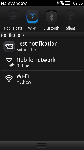 An analogue of Notification Center that is compatible with all devices based on Symbian Belle and higher,